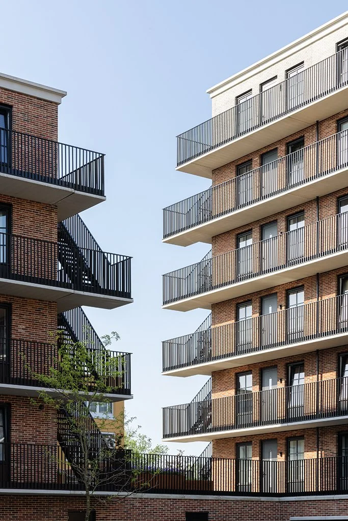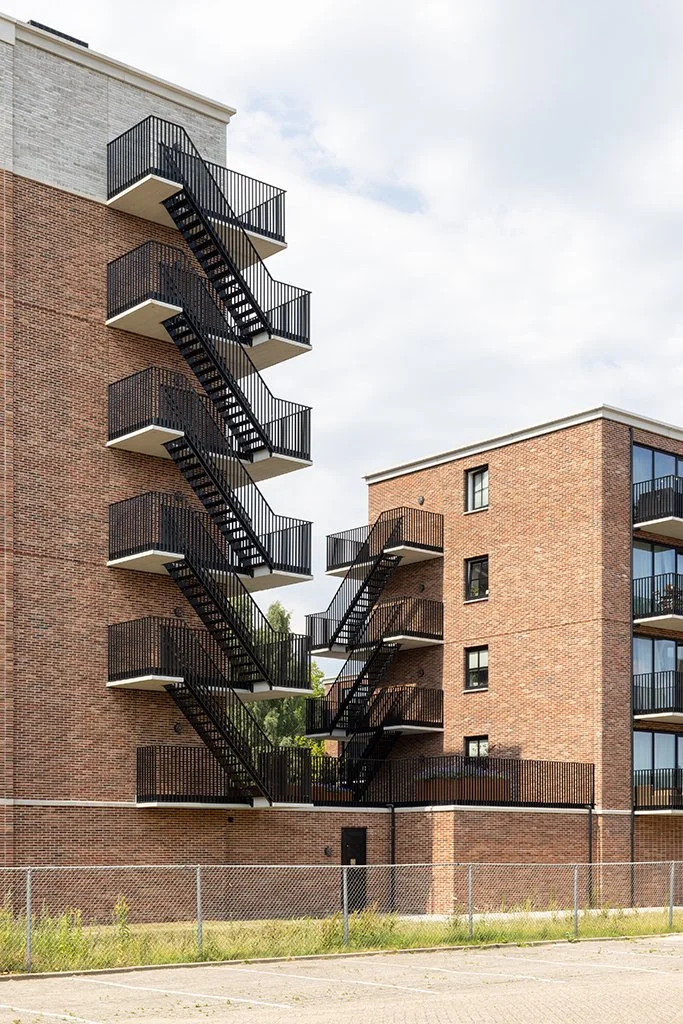 De appartementen zijn gemiddeld 60 m2 en voorzien van 2 slaapkamers. De woningen zijn aangesloten op stadswarmte en zijn voorzien van hoogwaardige aluminium kozijnen en isolatie. Het complex is naar de buitenzijde transparant uitgevoerd en aan de binnenzijde juist voorzien van ramen met roedes waardoor een meer intiem binnenhof ontstaat boven de parkeervoorziening.